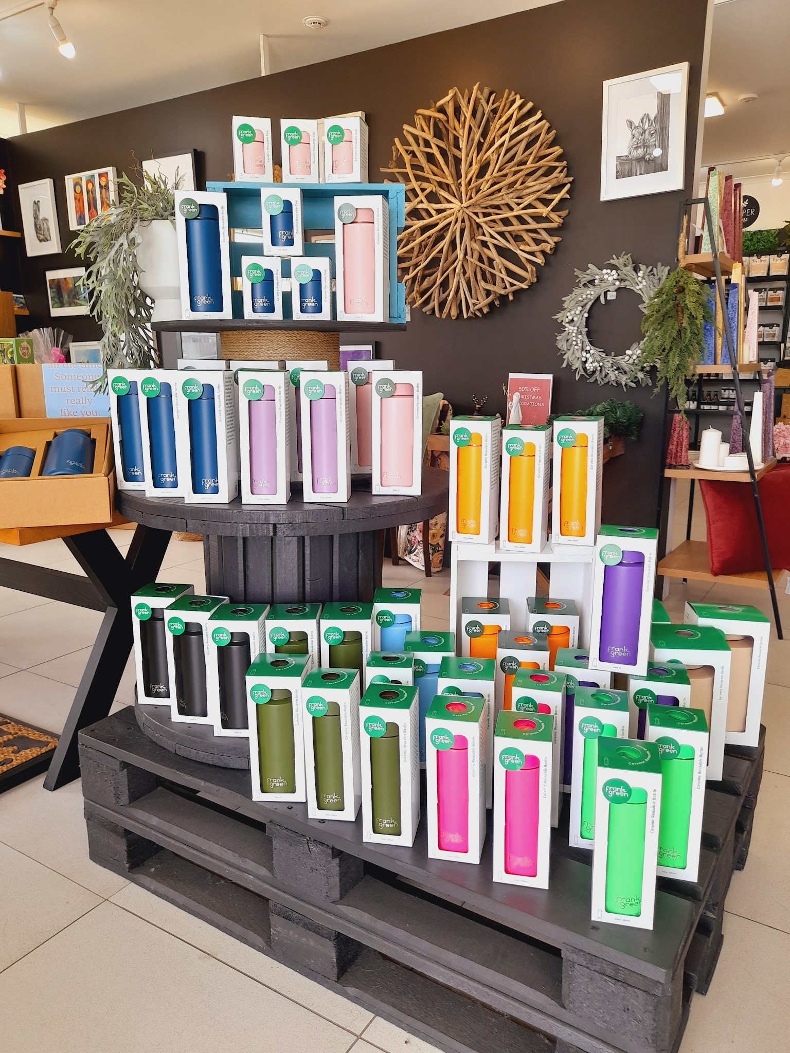 Frank Green reusable bottles and coffee cups, Huski beer coolers, Pepper & Me sauces and spice blends, Potter Bros chocolate — premium kitchen gear alongside the pantry treats to match.